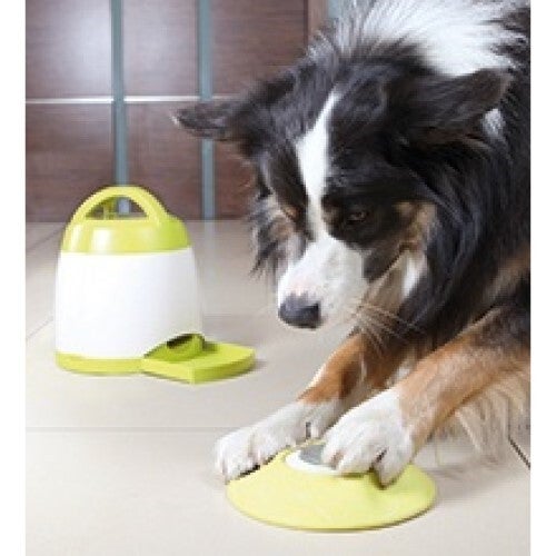 De Trixie Dog Activity Memory Trainer Strategiespel 3.0 20X24 cm is een intelligentiespel voor honden waar zij een beloning krijgen door het drukken op een knop. Een uitdagend spel voor de actieve hond! Bij een druk op de knop van de afstandsbediening valt er wat lekkers uit de automaat. Door de afstandsbediening op steeds een andere plek en steeds verder van de automaat te leggen, wordt jouw hond uitgedaagd zijn best te doen om wat lekkers te krijgen.